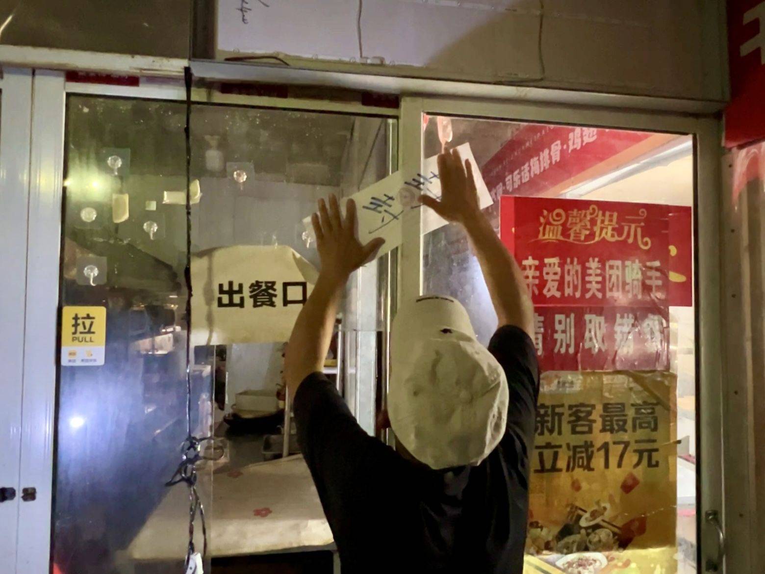 场地出租方在执法人员监督下,先行对涉事场所贴封条。新京报贝壳财经记者 俞金旻 摄