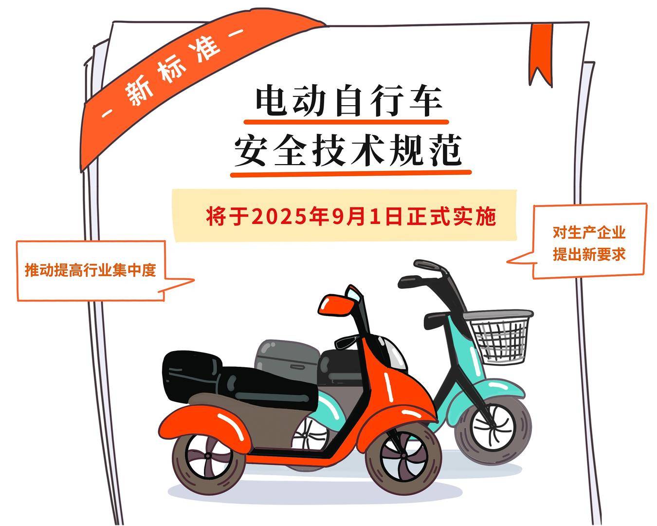 2025年9月1日,工信部等五部门组织修订的强制性国家标准《电动自行车安全技术规范》(GB 17761—2024)将正式实施。