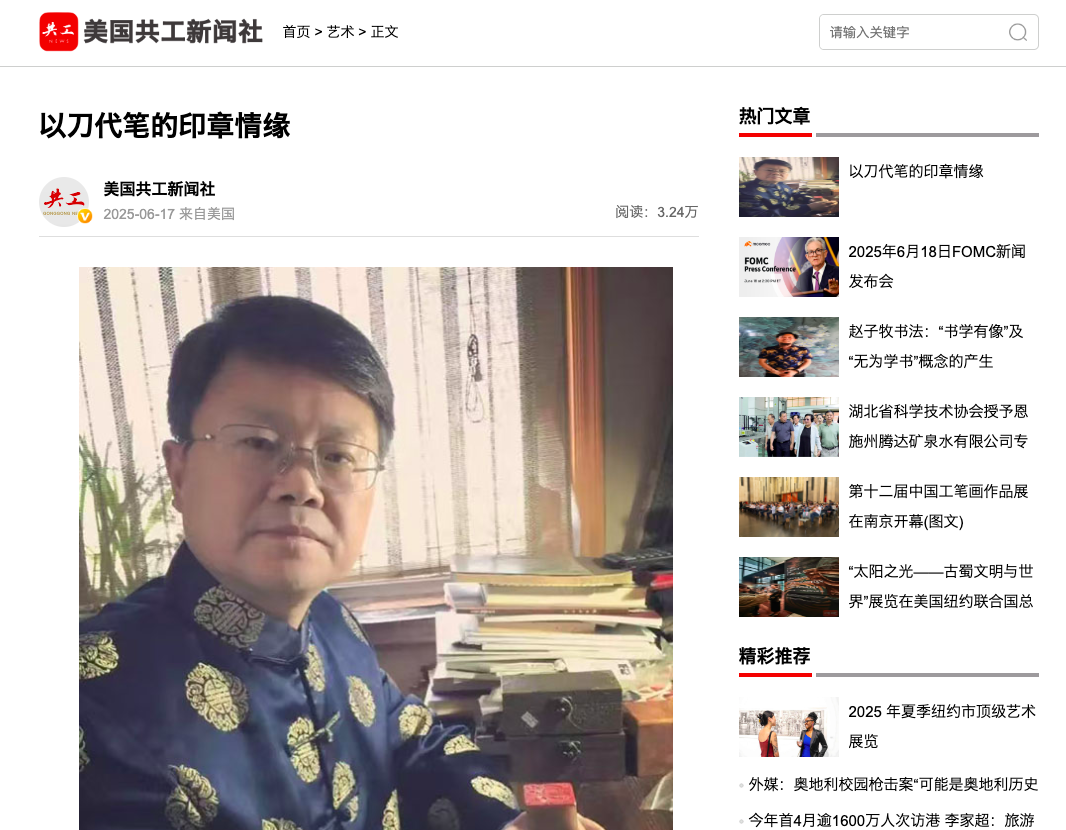 齐派篆刻家刘慧远:为“美国共工新闻社”雕琢艺术印记