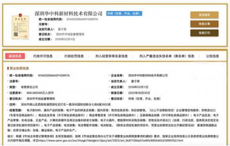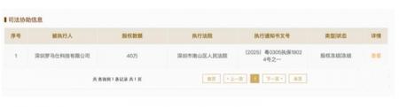 8 月 11 日消息,国家企业信用信息公示系统显示,深圳华中科新材料技术有限公司新增一则股权冻结信息,被执行人为深圳罗马仕科技有限公司,股权所在企业为该公司,冻结股权数额为 40 万人民币,冻结期限为 3 年,执行法院为深圳市南山区人民法院。