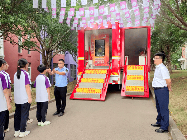 针对火灾逃生这一关键环节,在消防救援支队提供的火灾模拟逃生体验车旁,救援队成员与消防员共同开展指导。学生们在漆黑、浓烟的模拟火场环境中,亲身体验“生死60秒”,逐步掌握弯腰低姿、捂住口鼻等逃生技巧,深刻领会逃生黄金法则。