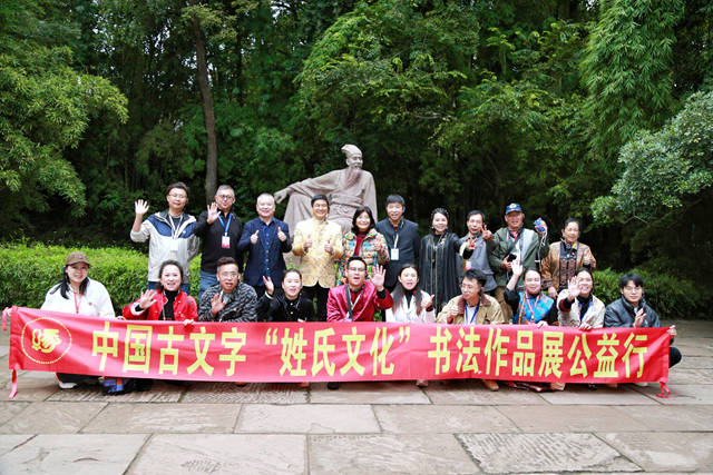 上午9时,考察团抵达中国古文字博物馆。馆长谭文贵在欢迎辞中表示:“文字是文明的载体,姓氏是血脉的延续。我们要让收藏在博物馆里的文物、陈列在广阔大地上的遗产都活起来。”在参观馆藏文物后,中国古文字博物馆唐健文秘书长宣布“中国古文字姓氏文化书法展公益行”成都站正式启动。全体嘉宾手持姓氏书法作品合影,齐声喊出“触摸文字温度,寻根姓氏启缘”的活动口号,现场气氛庄重热烈。