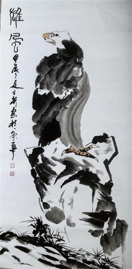 “始于古而不拘泥于古”的理念。他笔下的小写意花鸟,既承袭了“意在笔先,笔随心动的传统美学精髓,又通过奔放的笔触与通透的墨法,赋予作品强烈的视觉张力。在《墨竹》《雄鹰》等作品中,他以“师其意而不师其迹”的创作方式,将文人画的笔墨程式转化为具有当代性的视觉语言