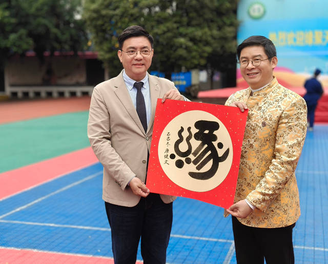 谭文贵馆长现场挥毫,为学校题写"德能淬理,兼爱善工"八字校训,以书法艺术诠释教育理念。唐健文先生则将其走遍100多个国家书写的大爱之"缘"字赠予学校永久珍藏,寓意文化传承无远弗届。学生们彬彬有礼、落落大方,主动与专家学者交流姓氏文化,主动与唐老师合影留念,踊跃加入缘文化社群,现场洋溢着温暖而充满活力的文化氛围。这种互动不仅增进了学生对传统文化的认同,更激发了他们对文化传承的责任感。