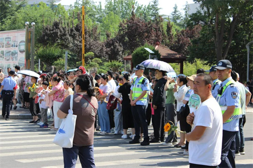 趁着考试期间的间隙,交警们还向在考场外等待的考生家长宣传文明交通知识。围绕“一盔一带”“严禁酒驾”安全守护行动,交警们详细讲解骑乘摩托车、电动车佩戴安全头盔,以及驾乘汽车系好安全带的重要性,通过列举因未规范佩戴使用、酒后驾驶而导致严重后果的交通事故案例,让家长们深刻认识到其意义。还告知家长在接送考生时,务必遵守交通规则,不在路边随意停车、掉头,服从现场交警指挥,共同维护良好的交通秩序。