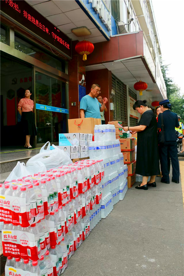 11日上午9点,侯马市新时代文明实践文艺轻骑兵团队联合中国普法教育在线网等爱心企业和社会组织,来到侯马市公安交警大队,开展了“酷暑送清凉”慰问交警志愿活动。该团队与中国普法教育在线网、各爱心商家积极捐款、捐物,购置慰问物品,将矿泉水、水果、绿豆、冰糖、酸梅粉、碗面、方便面、麻辣萝卜干、香辣肠、干馍片、鸡蛋、茶叶、喝水杯等清凉饮品送到了一线民警手中,并向在炎炎夏日中坚守岗位的一线交警致以最诚挚的敬意和问候,感谢他们为侯马城市和人民的辛勤付出。