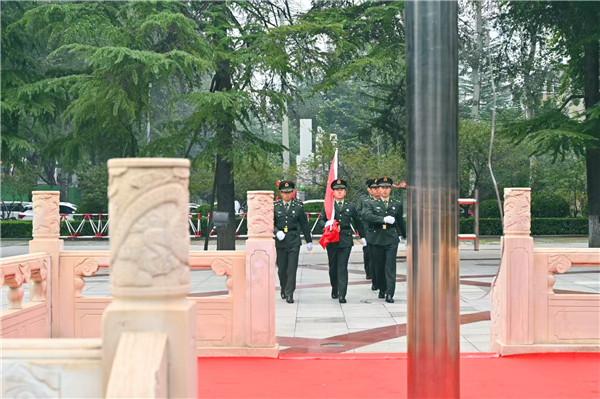 身着红色马甲的志愿者们精神饱满,在广场上整齐列队。8时整,伴随着雄壮激昂的《义勇军进行曲》,英姿飒爽的护旗手迈着铿锵有力的步伐,护卫五星红旗稳步走向升旗台。全体志愿者肃立注目,高唱国歌,目光紧紧追随冉冉升起的国旗——当五星红旗升至旗杆顶端、迎风飘扬的瞬间,对祖国的热爱与自豪在每个人心中激荡,整个仪式庄严肃穆,尽显志愿者队伍的良好风貌与深厚家国情怀。