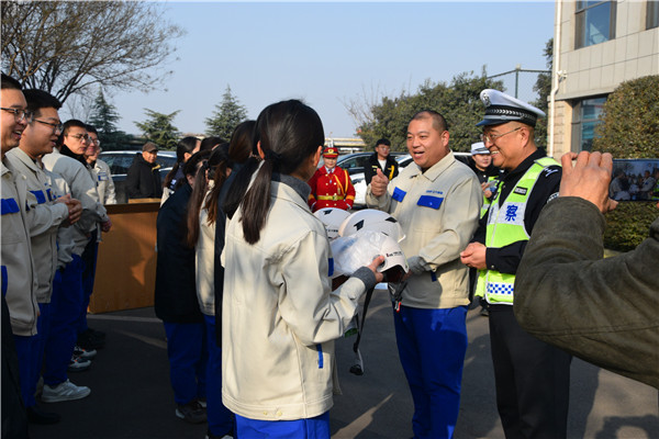 山西正大制管有限公司积极践行企业社会责任,为企业员工免费发放了符合安全标准的高品质头盔。企业负责人表示:保障员工出行安全是企业应尽的义务,他也希望借此行动,带动更多企业与个人关注交通安全,共同营造安全有序的道路环境。