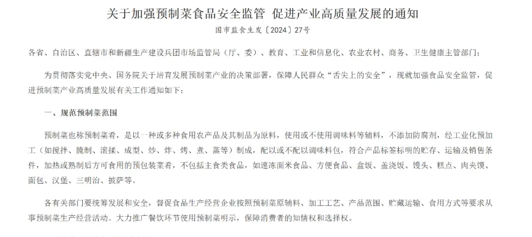 必须承认,消费者对预制菜的反感,有相当一部分的原因是反感部分商家滥用“预制”工艺,包括使用大量调料、食品添加剂等取代新鲜食材。但是,从法律法规的角度看,这些产品并非预制菜。市场监管总局等部门联合发布的《关于加强预制菜食品安全监管 促进产业高质量发展的通知》明确,“预制菜是以一种或多种食用农产品及其制品为原料,使用或不使用调味料等辅料,不添加防腐剂,经工业化预加工制成”。